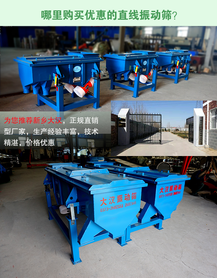 現提前預約,即可享受新折扣價,您也可來廠對直線振動篩進行免費的參觀與試機,了解實際生産現場的運行情況,大漢公司随時期待着您的到來。