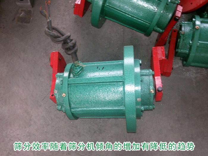 當振動電機的工作轉速固定在500r/min時,在相對增高線速度的錘頭撞擊下,使得破碎并使之均勻化,排料粒度相對小一些,較有利于下道篩分工序。篩分機在傾角較小的工況下,篩分效率都較高。但随着篩機轉速的增高,傾角的增大,部分物料在篩機體内開始做離心運動,反而不利于篩分作業,篩分效率迅速降低。