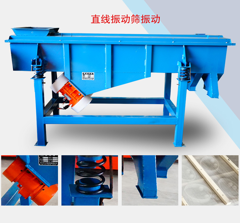 直線振動篩的工作原理主要爲雙振動電機進行驅動,利用振動電機的激振力使物料在篩面上進行直線運動,達到篩分效果。
