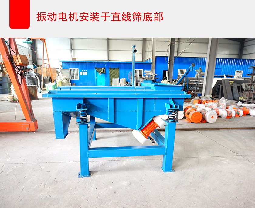 當然,也可以通過減少直線篩的篩框等整體寬度來解決這個問題,但這樣會造成設備的有效篩分面積減少,導緻處理量變小,影響篩分效率、生産進度,所以可以選擇将振動電機安裝在設備的底部,以此來減少直線篩的整體寬度,這樣即保證了設備的有效篩分面積,不影響處理量和篩分效率,也大大減小了直線篩設備的整體寬度。